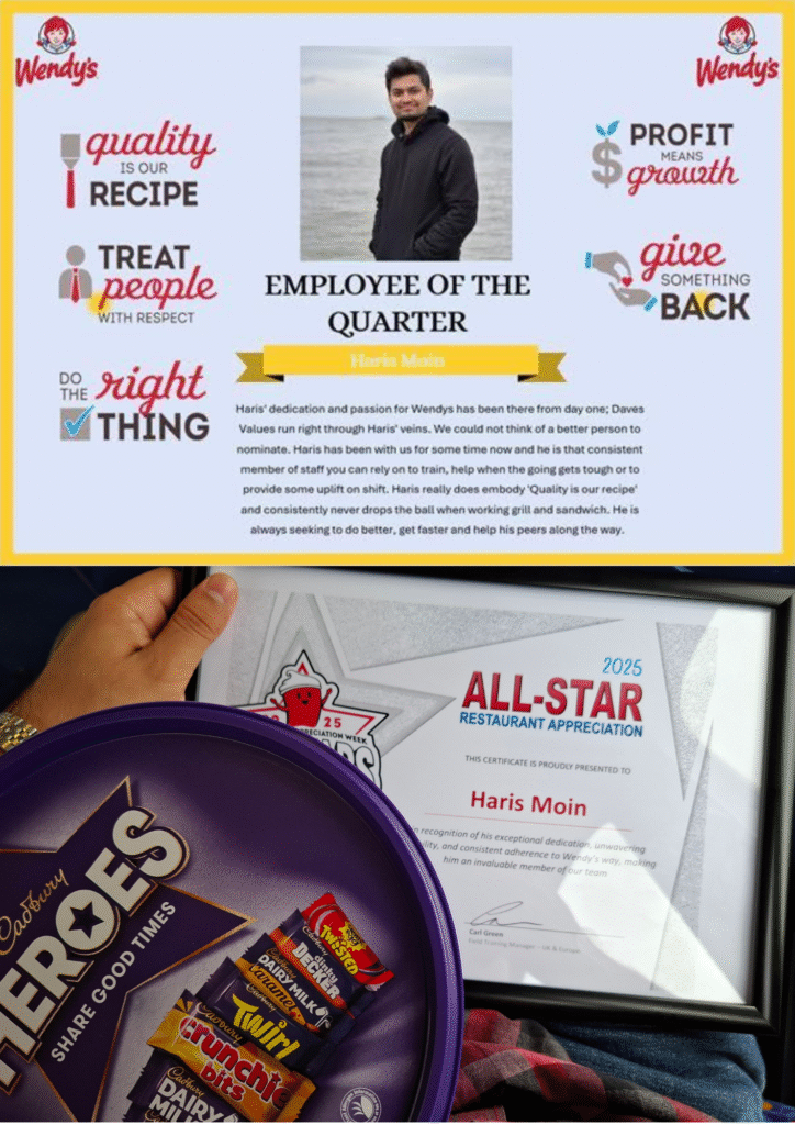 Many people left eventually down the line in the 6-7 months time I was there and though it was comforting to have friends and a financial wall to fall back on, the thought of leaving Wendys always made me dwell and confused of when would it be my time, completely oblivious to the fact that I would get attached to it more than I thought. Well, eventually it happened. After spending almost 7 months doing shifts in and out, hanging out with some of the greatest people I've known, it was finally my time to leave. A company had offered me a role a couple months along the line prior to leaving and I was working for them part-time alongside also working for Wendy's. Being able to do something that I came here for and also getting a chance to further advance my career and gaining more experience definitely shifted my preference towards the role offered to me by the company. It wasn't able to meet the financial level that I was getting from Wendy's but was good enough for a hand-to-mouth situation. Let me tell you that it wasn't even the bigger part of the problem I was worrying about than to explain it to my mates at Wendy's why I would be leaving. So, like a mature person I came to the decision of not telling them at all 🥲. That decision obviously backfired because people liked to gossip, most of which was leaked through my great manager himself. After handing my notice, everyone knew the next day. So, my eventual plan of breaking it down slowly became useless even before it started. Obviously, people became mad, unhappy and didn't wanted to see my face. But, they eventually came around and even behind the disappointment, they carried acceptance and genuine happiness for me moving on.